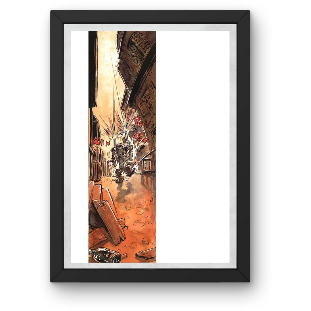 Cette aquarelle originale est intitulée » cowboy » faisant parti de l’univers de notre livre « Nightmare« . Le travail sur la couleur et la lumière est caractéristique du style de Thibault Colon de Franciosi. C’est une pièce unique qui apportera une touche onirique et authentique à votre collection.
