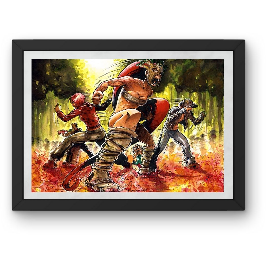 Cette aquarelle originale est intitulée « équipe » faisant parti de l’univers de notre livre « Nightmare« . Le travail sur la couleur et la lumière est caractéristique du style de Thibault Colon de Franciosi. C’est une pièce unique qui apportera une touche onirique et authentique à votre collection.