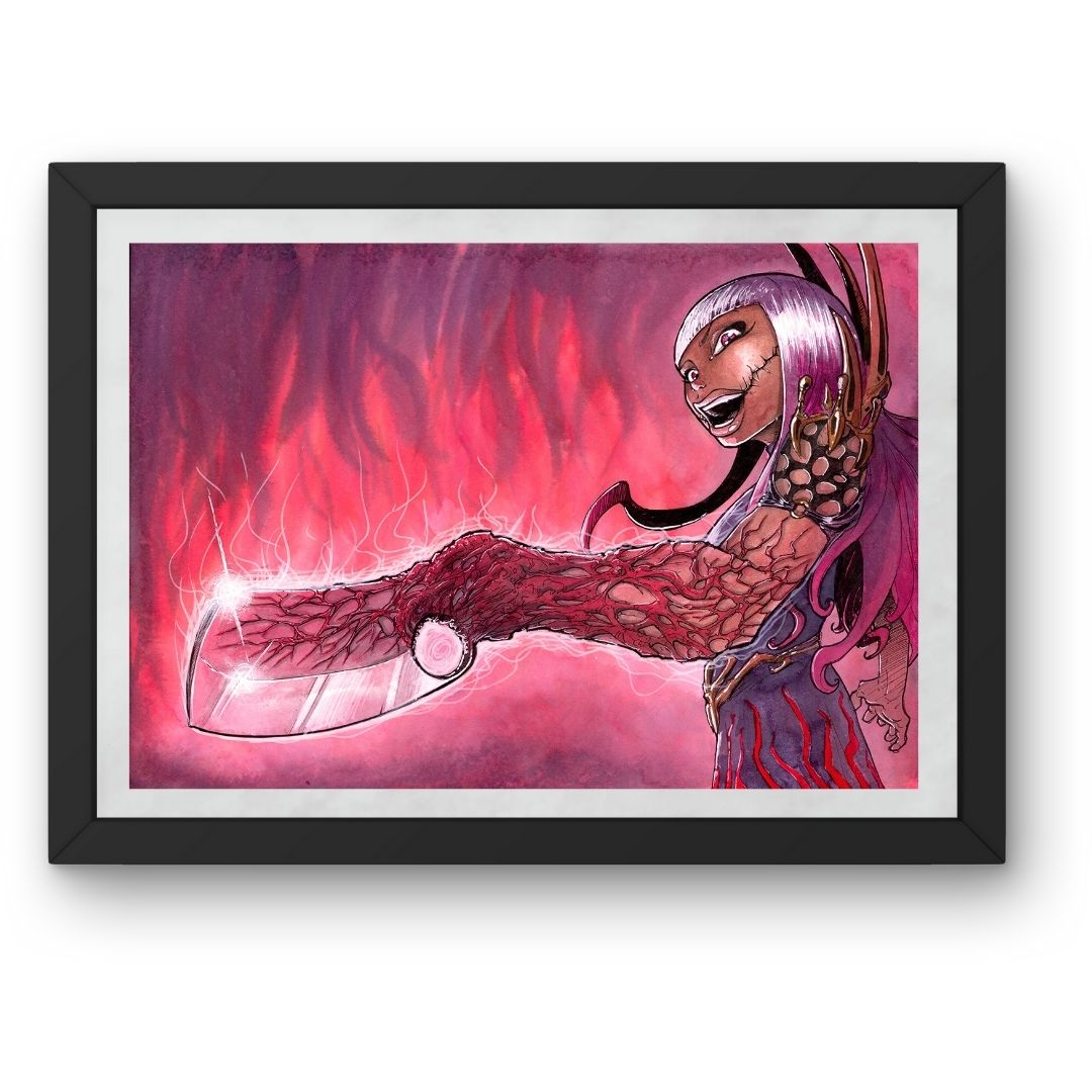 Cette aquarelle originale est intitulée « Gladys knife » faisant parti de l’univers de notre livre « Nightmare« . Le travail sur la couleur et la lumière est caractéristique du style de Thibault Colon de Franciosi. C’est une pièce unique qui apportera une touche onirique et authentique à votre collection.