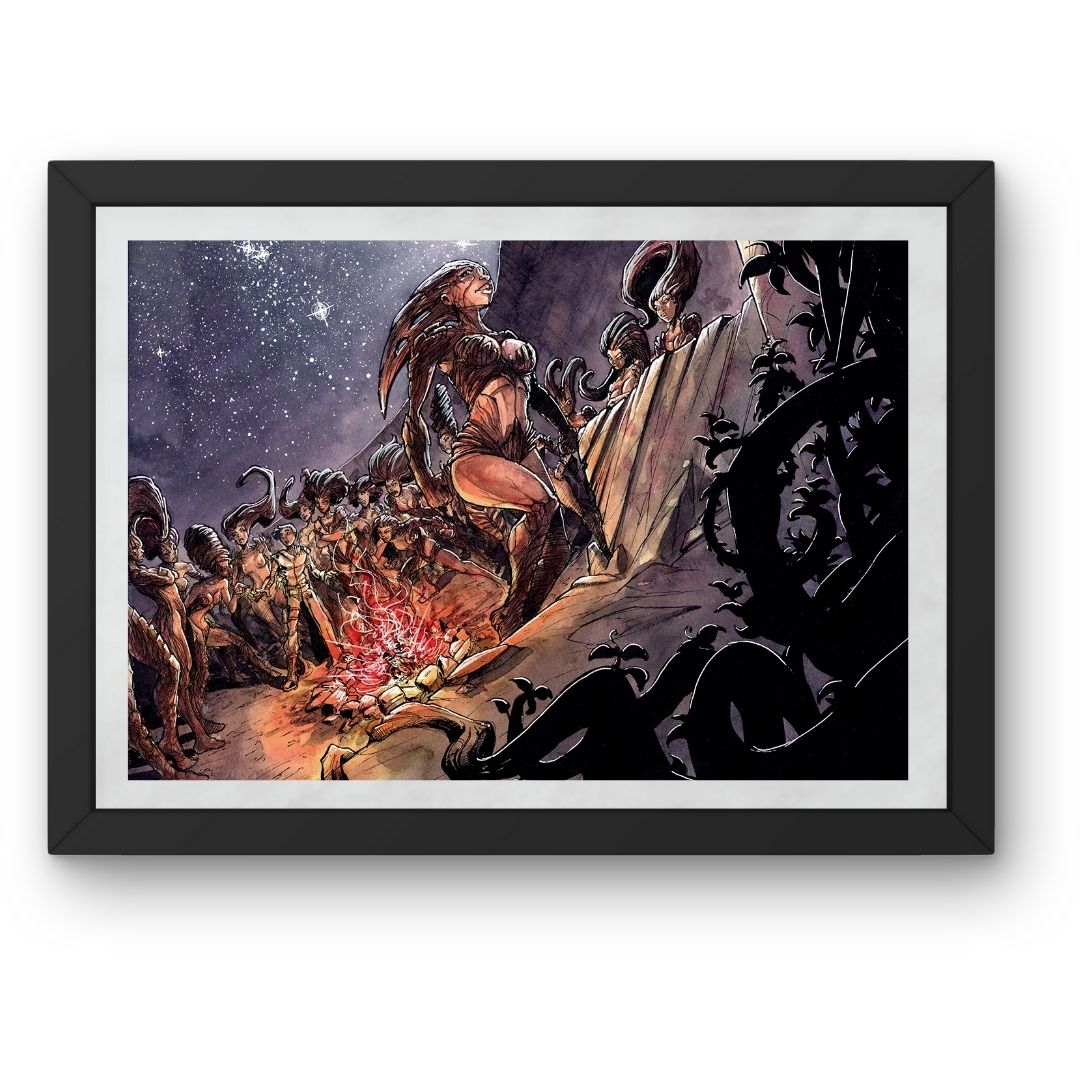 Cette aquarelle originale est intitulée « Queen cereza » faisant parti de l’univers de notre livre « Nightmare« . Le travail sur la couleur et la lumière est caractéristique du style de Thibault Colon de Franciosi. C’est une pièce unique qui apportera une touche onirique et authentique à votre collection.