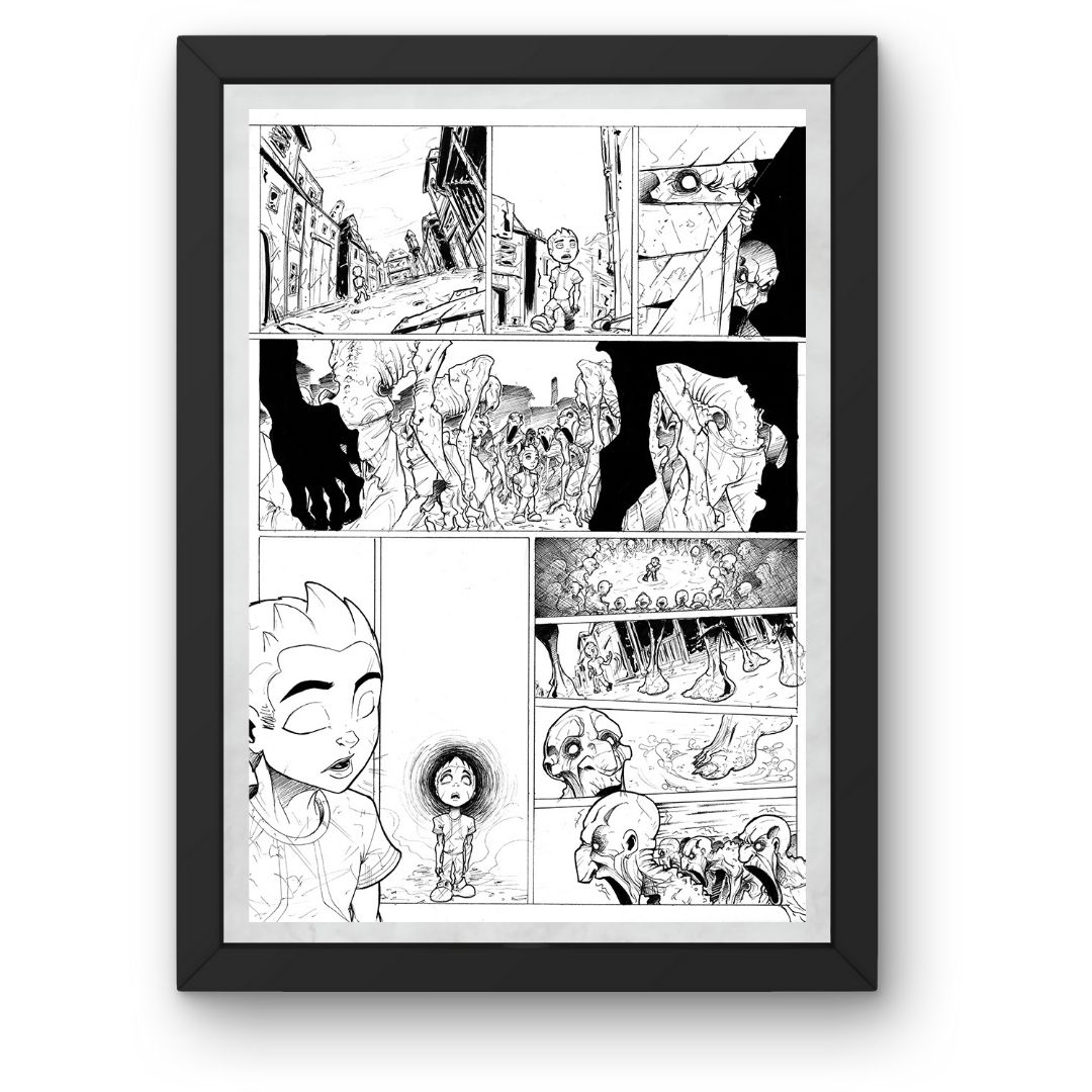 Cette planche de bande dessinée originale illustre un moment clé de l’ouvrage Nightmare. Chaque case a été composée avec soin pour respecter le rythme narratif du projet.