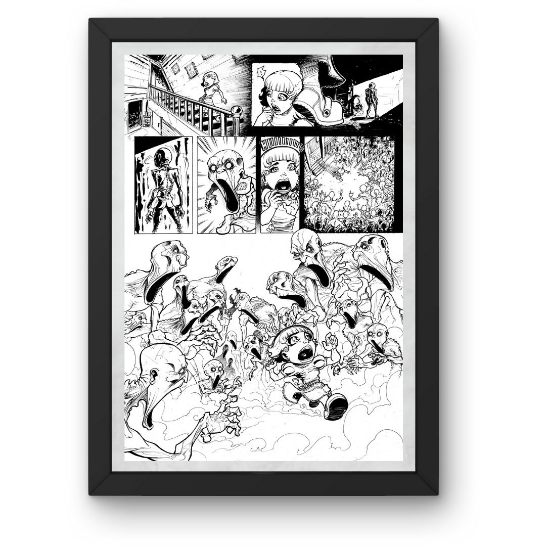Cette planche de bande dessinée originale illustre un moment clé de l’ouvrage Nightmare. Chaque case a été composée avec soin pour respecter le rythme narratif du projet.