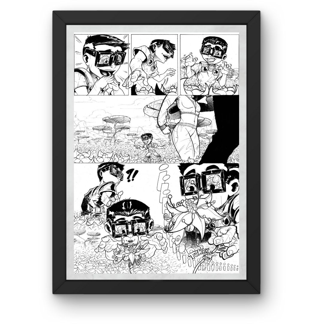 Cette planche de bande dessinée originale illustre un moment clé de l’ouvrage Nightmare. Chaque case a été composée avec soin pour respecter le rythme narratif du projet.