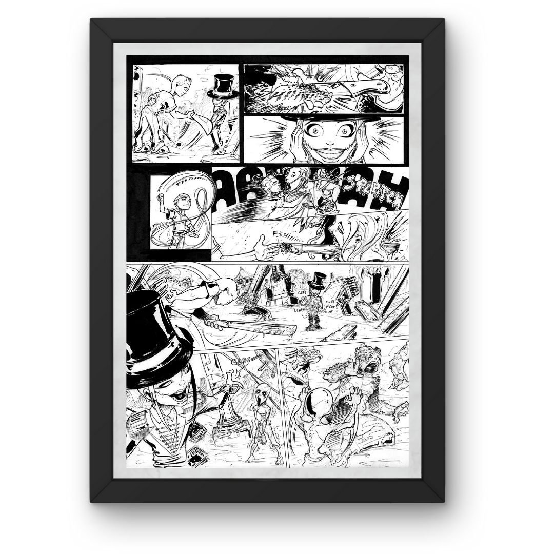Cette planche de bande dessinée originale illustre un moment clé de l’ouvrage Nightmare. Chaque case a été composée avec soin pour respecter le rythme narratif du projet.