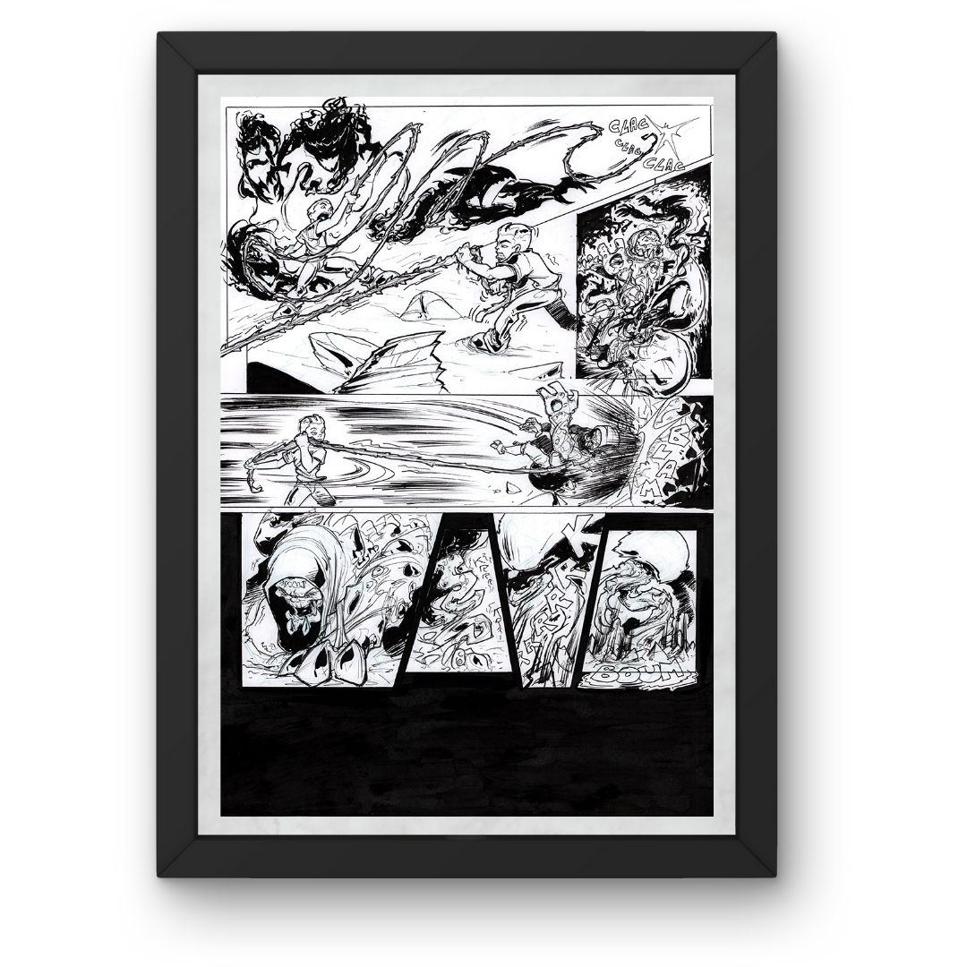 Cette planche de bande dessinée originale illustre un moment clé de l’ouvrage Nightmare. Chaque case a été composée avec soin pour respecter le rythme narratif du projet.