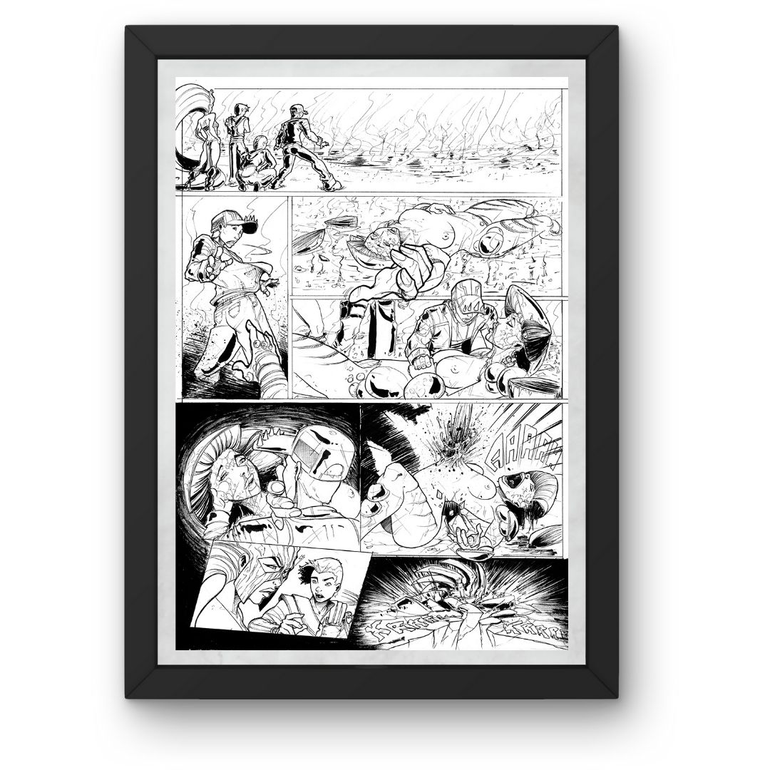 Cette planche de bande dessinée originale illustre un moment clé de l’ouvrage Nightmare. Chaque case a été composée avec soin pour respecter le rythme narratif du projet.